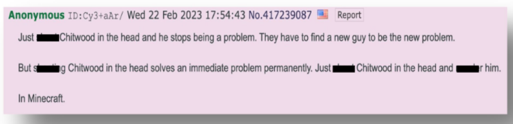 據當地新聞稱,這名男子叫做理查德·戈登 (Richard Golden),他將仇恨言論發在4chan論壇的pol板塊,恐嚇物件是沃盧西亞縣治安官邁克·奇特伍德。奇特伍德公開支援猶太人和猶太社群,是當地納粹分子的眼中釘。