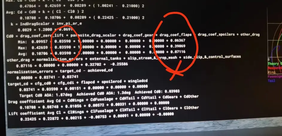 正如圖中所示,零升阻力是一個精心計算的引數,在這裡它是0.03590,一個精確到如此地步的引數,被後面那個Other drag大大的超越了,平均數值在零升阻力的兩倍更多。這倒不是關鍵問題,問題是怎麼計算出來的SDK完全沒有說明過。