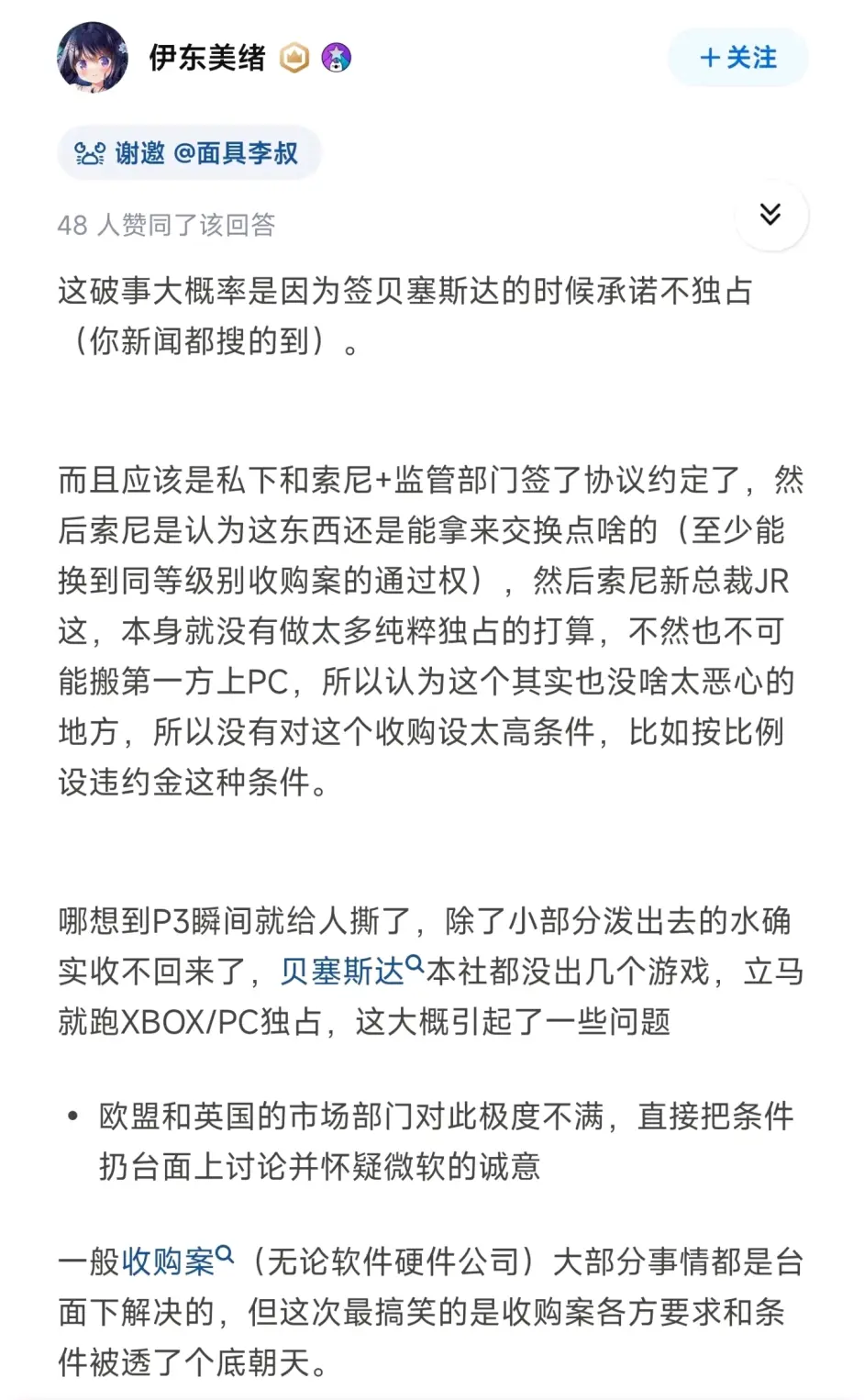 人家監管機構既然找上微軟了,肯定也會找索尼之類業界企業公司瞭解情況,所以肯定也會找上索尼問看法意見啊!