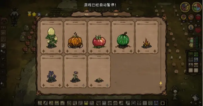 由圖可見隨機種子種出來的作物是按照一定概率來的,比較實用常用的農作物有西紅柿(高產血量精神回覆)、火龍果(75飢餓40血量的高二維回覆)。所以我們這裡就用火龍果西紅柿舉例子,要如何才能高效獲取目標作物。