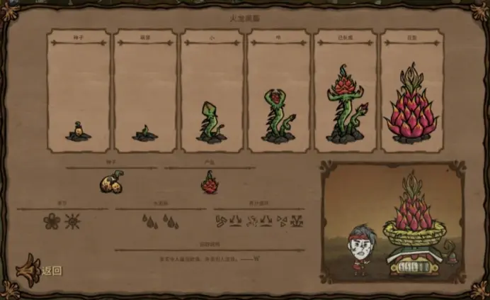 PS:如果只想要火龍果,也可以不施肥,只在喜好季節內種植,每階段澆水和對話,也能100%得到1顆火龍果和2個火龍果種子。如果有足夠的糞肥,每階段向地裡施肥,也能種出來一地的巨大火龍果(等熟悉了種地玩法之後,想怎麼種都可以)。