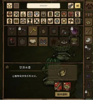 種植完種子之後,別忘了澆水(後續會講有什麼用),也是在同樣的製造欄,找到水壺並製作,水壺可以在淡水湖泊內手持並右鍵湖泊,就能灌滿水壺,或者使用冰塊也可給水壺填充少量的水量。