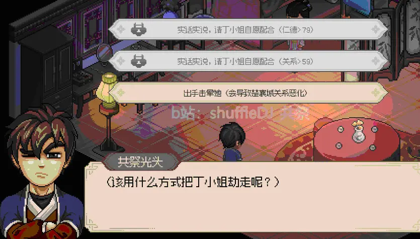 59開啟好感任務 口才融會貫通可以直接進行下一步 沒有達到的話得打一架 打過了就不理你了 隔一天還是一樣 非得故意輸給她才可以進行下一步(女人啊)