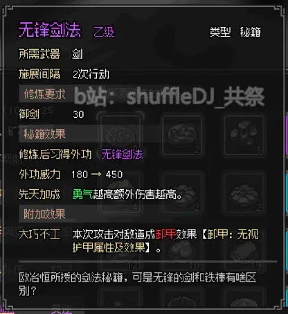 好感親密臂力大於9可以學習紫色劍法