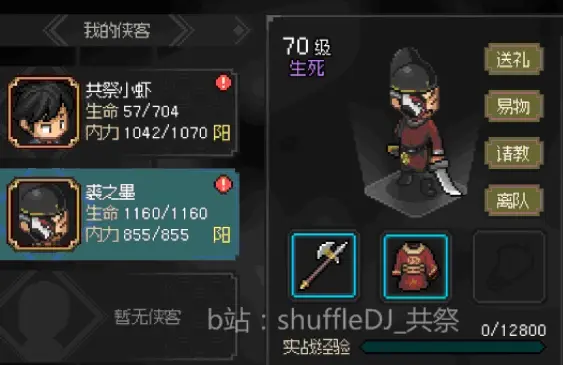 59好感跟他切磋3次 突破限制可以邀請入隊 入隊獲得乙級心法