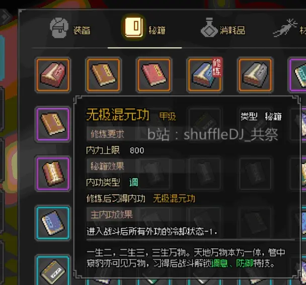 打完獲得30000點經驗和金色內功(邊上有4本武道感悟)