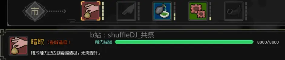 學習能力暗取 100點 走到木雕後面潛行按暗取圖示 遊標到黃色位置即可