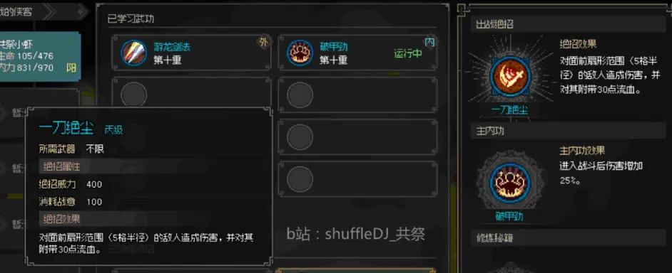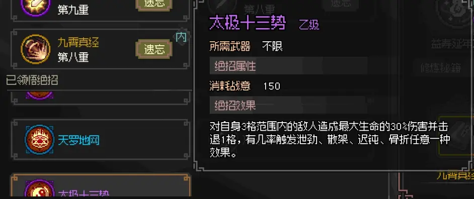 悟性15 得絕招 其實沒後面拿到的太極十三式強 因為太極十三式感覺是按血量固定傷害而且不吃反傷