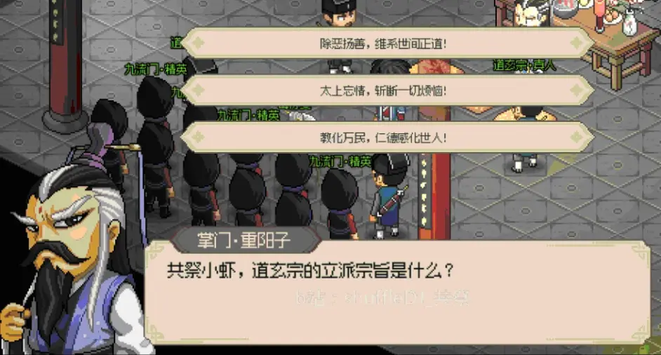 特別離譜的是此時門口看門的弟子沒參戰 捲入戰鬥會算敵人 連自己掌門步老大都打(算是npc機制問題 已經反饋了)