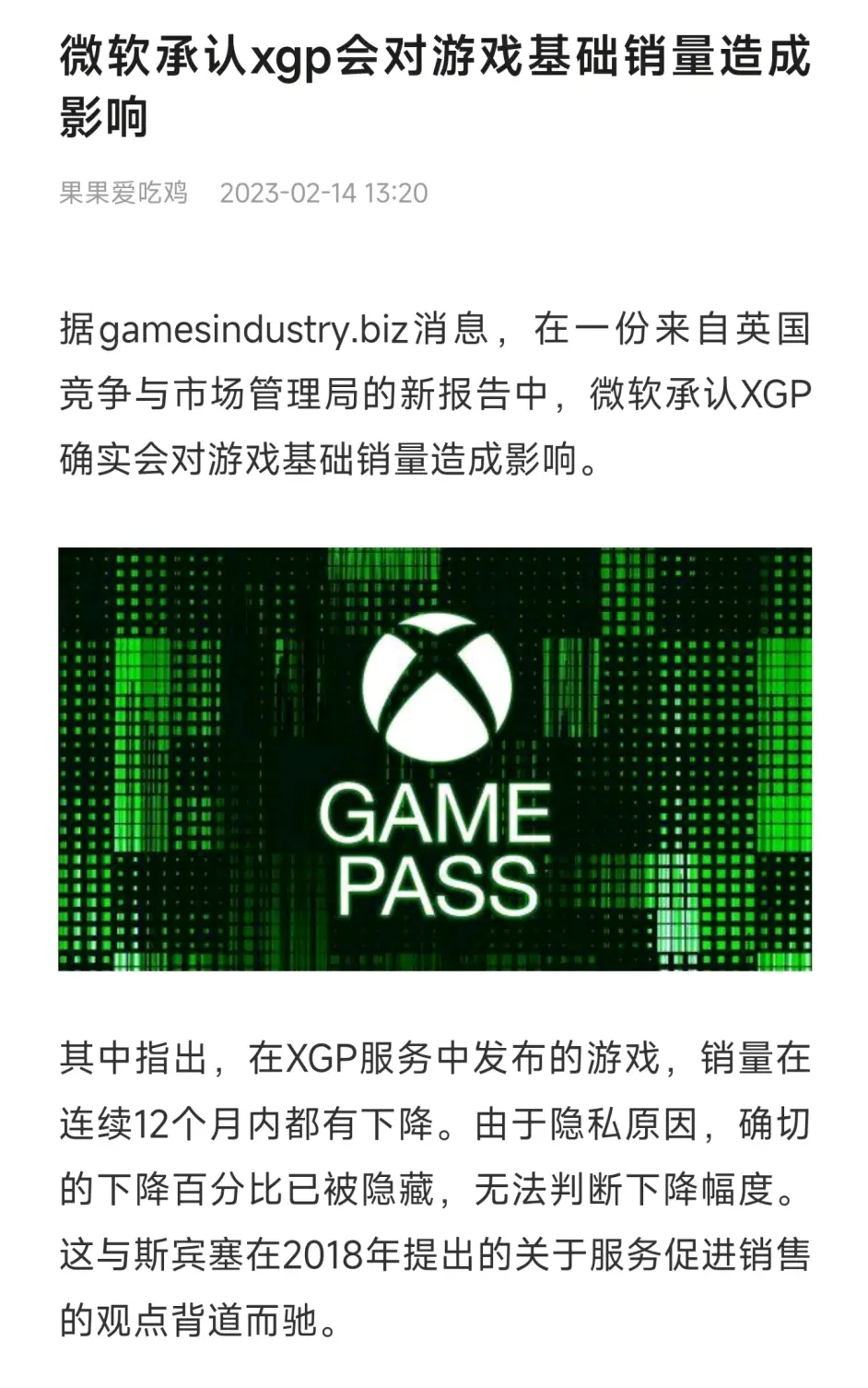 事實就是XGP不但不會增加XGP外正版遊戲的銷量,反而還會減少