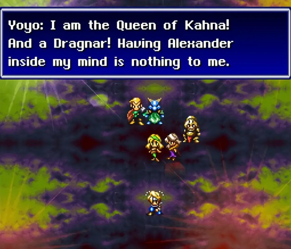 遊戲的上半程基本上都是這樣度過的,到了下半程主角團才開始匯合,最終匯聚成共同的主線劇情。據統計遊戲中可以控制的角色(算上隱藏角色)一共有14位,在當時的RPG遊戲中算是非常多的了。
