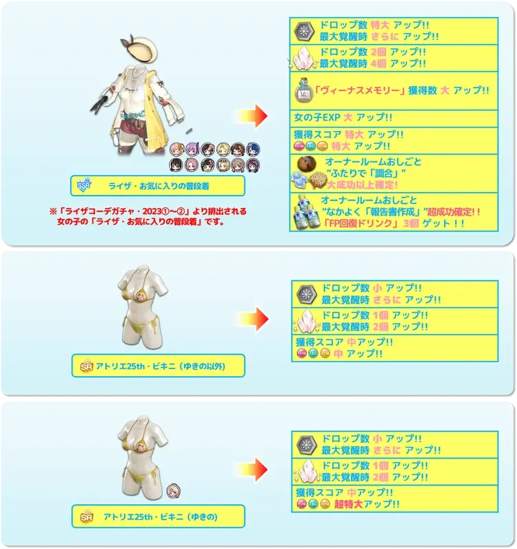 【萊莎的SR頭飾】本次增加了之前聯動沒登場的幾位角色,舊角色如果沒有入手,也可兌換。