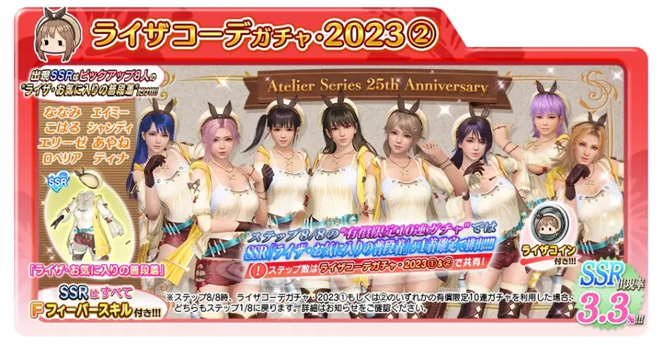 日服本週恰逢《萊莎3》發售,所以日服藉此機會開展與【鍊金工房系列25週年】的聯動活動,並且對前兩年聯動過的鍊金工房系列內容進行了大量復刻