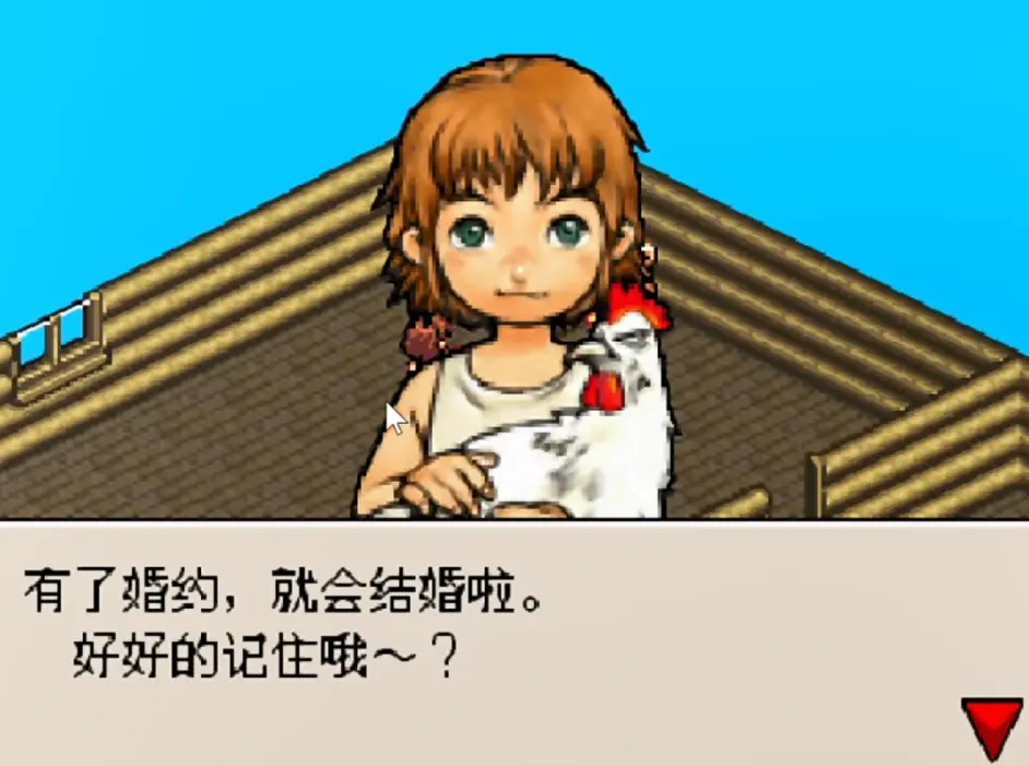 不過到了遊戲後期女戰士英格麗特的相關劇情走完之後,琪琪又回到主角農場家的二樓,提醒主角“我們之間還有婚約哦!”