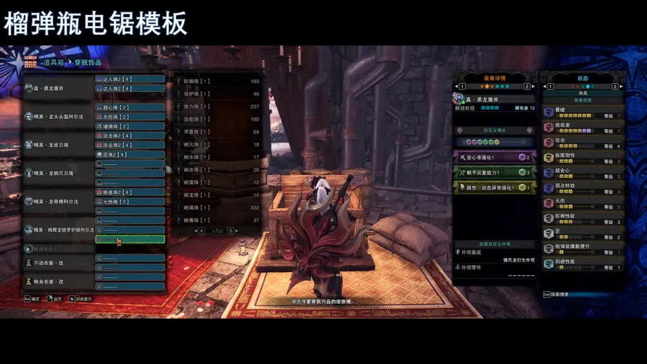 那麼如果對於站街百會並沒有需求,通過【弱點特效】提供會心的話,就可以留足大量孔位,也就是模板②,這套在調整少數技能後同樣可以作為屬性電鋸的配裝。