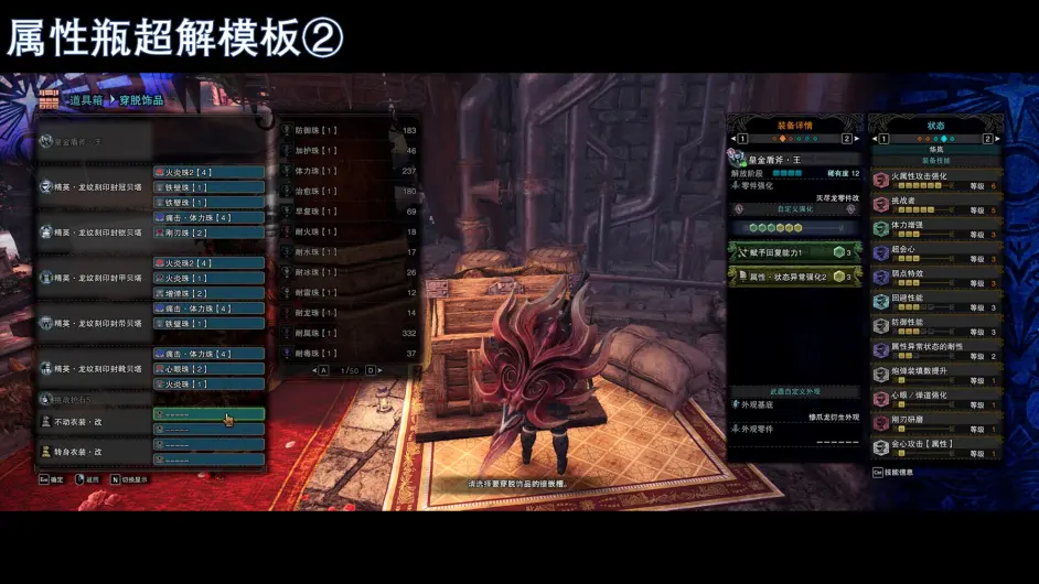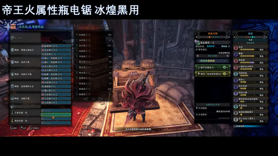 屬性電鋸的防具模板也不侷限於黑龍4件,冥赤3混搭,冥赤3黑龍2,舊版冥赤5在部分題材仍有運用,但是毫無疑問黑龍4帝王盾斧的安逸程度是最高的。