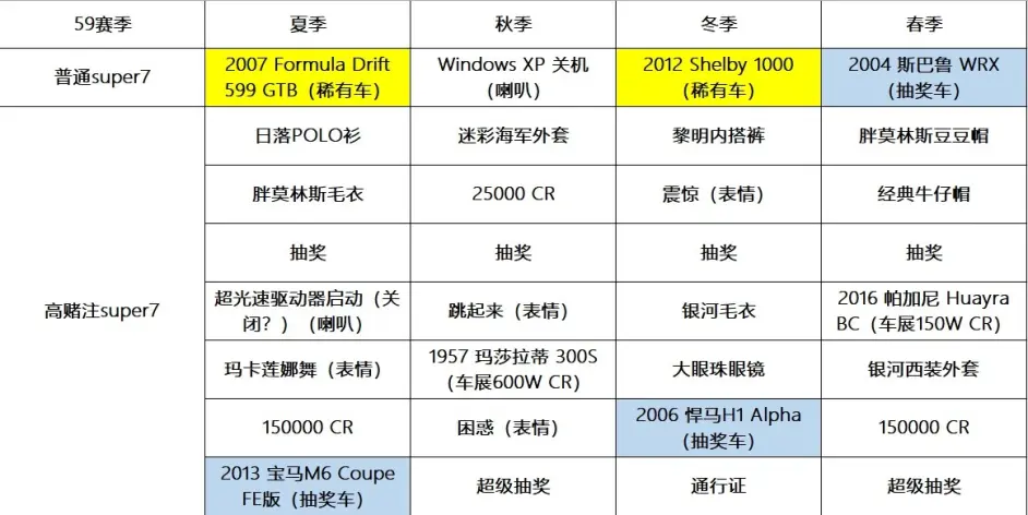 還是先說一下獎勵,本週50給的ds和rc f(可以改到S1玩玩)都是稀有車,季節賽裡給的三菱也是唯一一個非車包三菱,稀有但沒啥用。馬拉松商店上的科邁羅也是稀有(沒用),super7還比較不錯,普通給謝爾比1000,高血壓最後有通行證可以拿,聊勝於無。之前忘記講了,雖然英偉達發公告說解決了卡死的問題,但實際是沒解決,所以顯示卡驅動能不更新就不更新了(不登陸顯示卡賬號是不會自動更新的),或者像我一樣整兩臺電腦(兩個系統應該也可以),不然就會一直卡死。