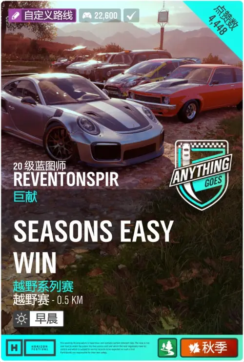 這是整個系列賽裡佔比最大的一個,而且只需要一個月完成一次,建議完成。這個取得資格是指在排位賽完成定級,但是新玩家需要先獲得參加排位賽的資格,個人建議新玩家去參加快速遊戲冒險裡的團隊賽車或者自由賽車(人比較多容易匹配到),等到賽車線上冒險等級達到三級以後(地平線生活等級),就可以去參加排名冒險,進去完完整整的打完一局就行了(團隊或者自由都可以)。匹配的時候容易遇見卡比(等待其他玩家載入),個人建議等5分鐘進不去就退了(強退或者斷網),等打完出來之後就算完成了。以上所有操作均在【線上冒險模式】選項卡中。