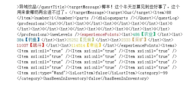 <experiencePoints><int>【農業】</int><int>【釣魚】</int><int>【覓食】</int><int>【採礦】</int><int>【戰鬥】</int><int>【幸運】</int>