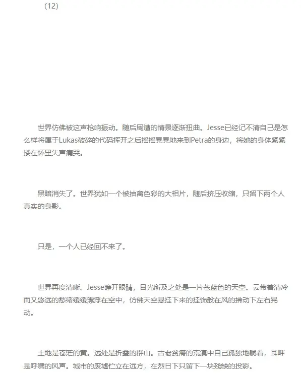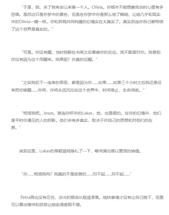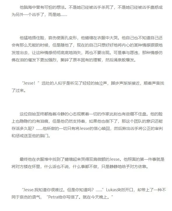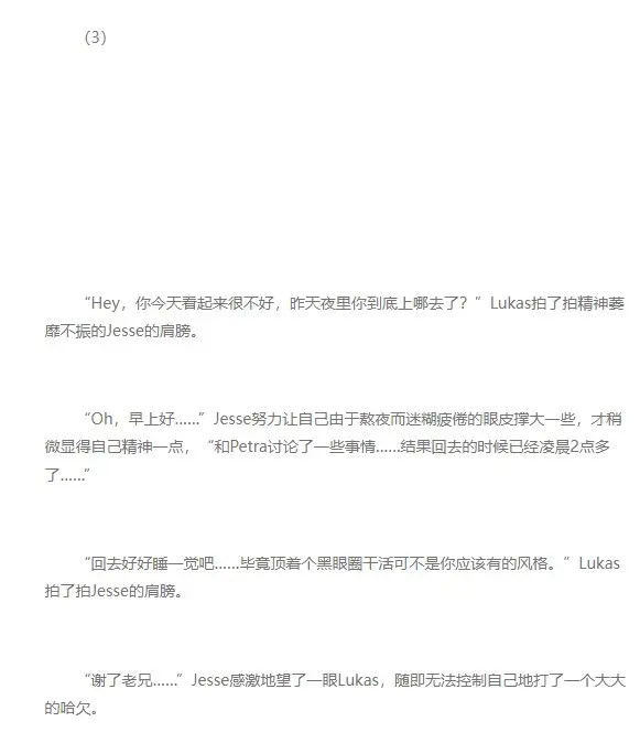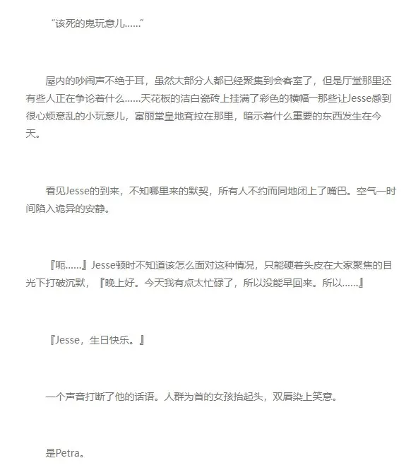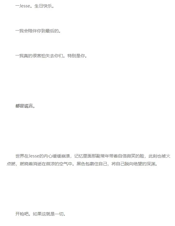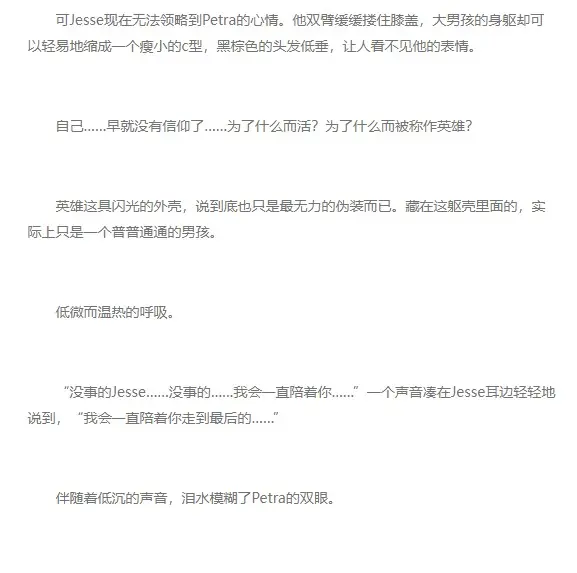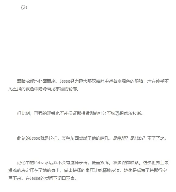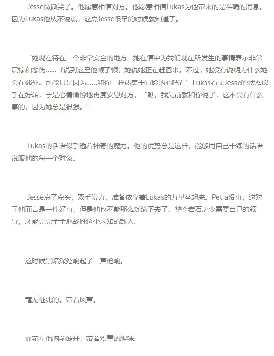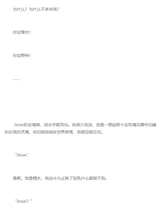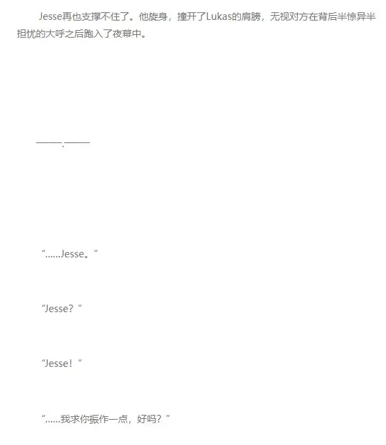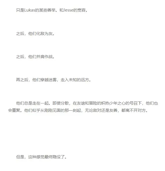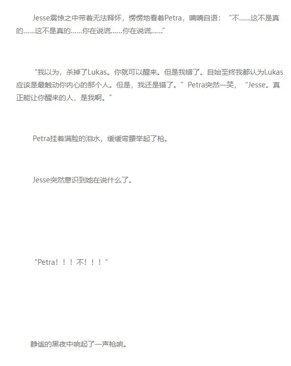 TTG的突然倒閉令無數玩家惋惜,jesse和petra的故事也戛然而止。即使公司後來重建,也一直未能拿到版權。而第二季的結局是如此開放,給我們留下了無盡的想象空間。這也催生了許多優秀的MCSM同人文。今天搬運一篇個人覺得非常好的文章和大家分享。這篇文章之所以能在我看過的諸多MCSM同人文中脫穎而出,是因為它講的是一個完整的故事,既不是零零碎碎,也不是半途而廢。雖然其中一些細節(如出現槍支)和原作有出入,但這本來就是改編,也無可厚非。