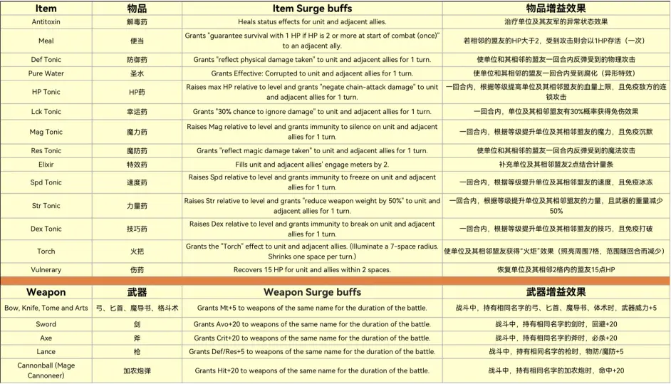 然後是破魔師的特性,會根據物品種類和武器種類為隊友提供增幅效果,我把增幅效果列出來。