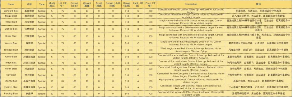 出現在DLC神龍之章維羅妮卡外傳。我把此職業的職業資料和彈種資料都做了整理,分別做表格列出來。