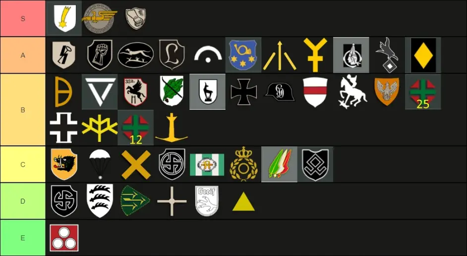 2.同盟國與軸心國的部隊評級互相獨立,僅代表其在所屬陣營內的強度,無法與另一陣營同一等級的部隊進行橫向對比或對位。即,軸心國S級≠同盟國S級,以此類推。