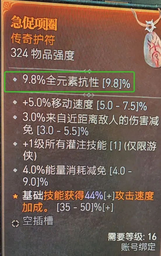 項鍊固定詞綴:全抗性
