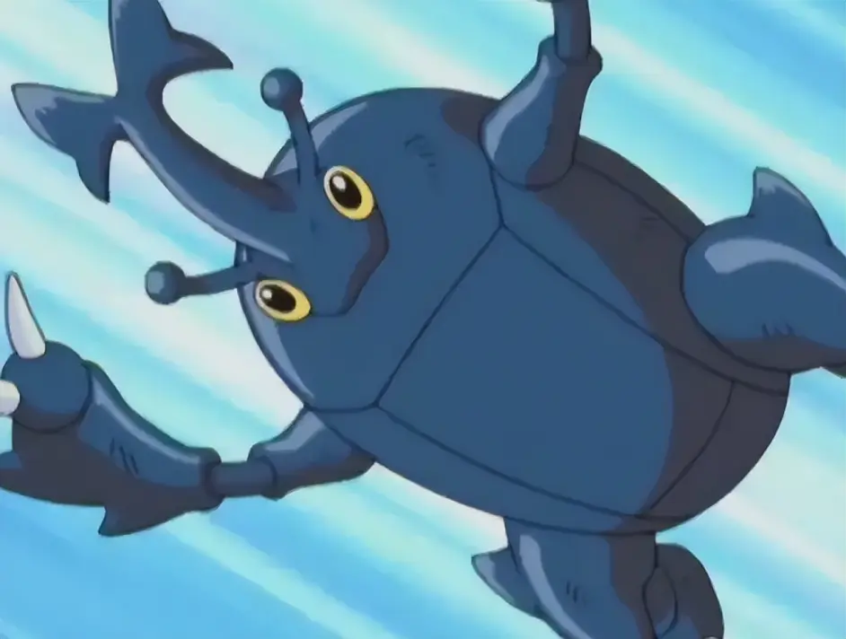 然後是隊伍裡有兩隻前代的寶可夢,而且兩隻都是第二世代的,首先是蟲鋼屬性的佛烈託斯,佛烈託斯作為蟲鋼除了四倍弱火之外綜合耐久面板是合格的,對戰中經常作為撒釘手出現,打的都是功能性技能比較多,阿楓的佛烈託斯配招為蟲咬+陀螺球+詛咒+尖石攻擊,走的反而是輸出路線,而且還帶著個詛咒來強化耐久,而赫拉克羅斯則是有著速度短板的物攻輸出手,配招為超級角擊+近身戰+尖石攻擊+暗襲要害,比較簡單的四攻配置。