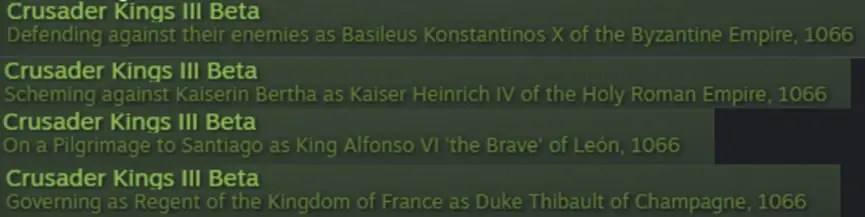 一個小的但有趣的改動是我們將會在即將到來的版本中豐富Steam平臺的線上表現。這意味著你或者你的朋友在玩CK3時,你可以在Steam的好友列表中看到一些特色資訊,顯示他們在遊戲中具體在幹什麼。他們是否在領土內發起盛大巡遊拜訪封臣?可能在計劃交新的朋友?或者可能他們剛剛殺害了自己的兄弟並作為一個無恥的弒親者。