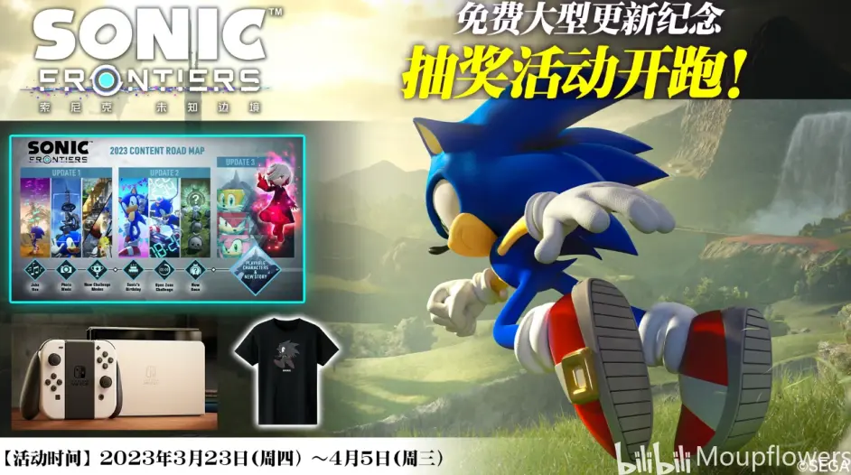 為紀念《索尼克 未知邊境》大型免費更新第 1 彈上線,刺蝟索尼克官方微博正在進行抽獎活動,將送出“Nintendo Switch OLED 版”與“索尼克 T 恤”。趕快來試一試運氣吧!