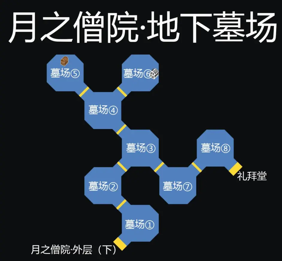 拿完寶箱後·回到月之僧院·地下墓場③·南走·進入月之僧院·地下墓場⑦