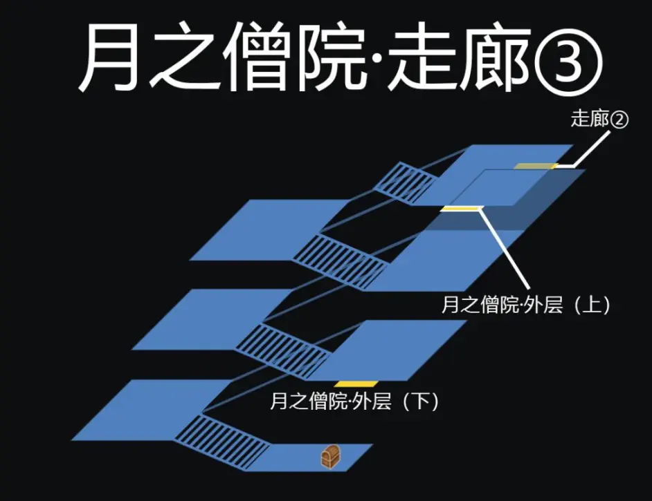 啟動機關後·走到上層東側中間·截圖位置·東走·進入月之僧院·二層①