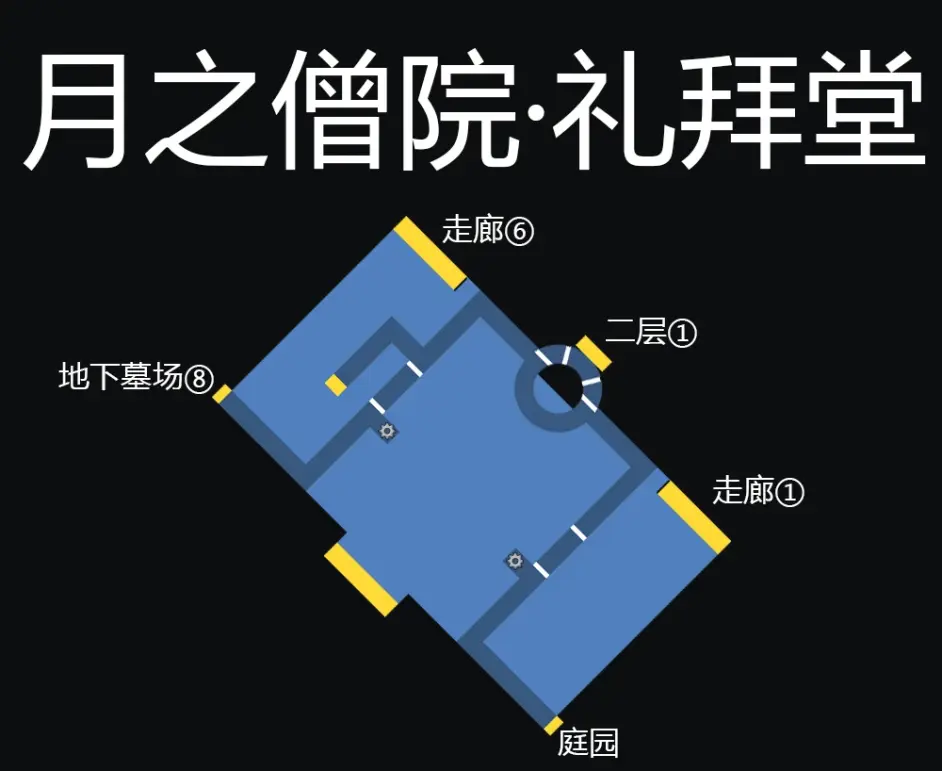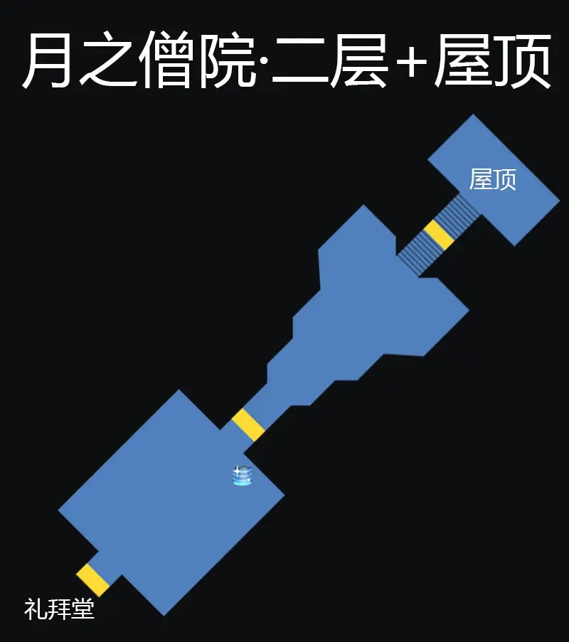 走到截圖位置·北走·進入月之僧院·禮拜堂(上層)