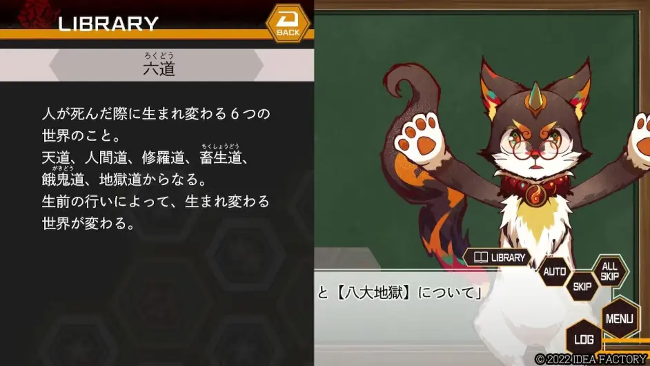 天獄的背景首先在遊戲名中就有所體現,這個世界擁有六道輪迴,人鬼神共存,在地獄中有極少數罪人覺醒了【煩能】,也就是俗稱異能。開局時 名為魂緒的貓咪就會化身小老師,偶爾給你講解關於六道與八熱地獄之類的知識。