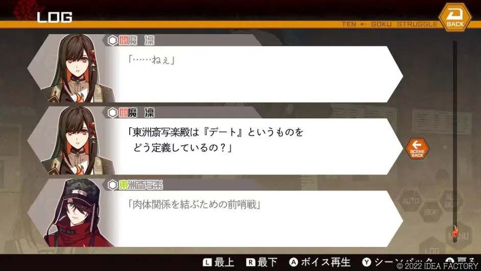 遊戲共通線十分之臭長,個人線也是,我好久沒見過長達12章的個人線了......除了四個人齊聲的“犯すぞ”震撼我媽以外,印象裡沒有特別離譜的了。厭女男和厭男女,可以說是“地獄”開局了,但隨劇情發展,這兩個標籤基本都是亂消失的,以致於內建官方吐槽“你不是厭男嗎”/“你的厭女哪去了”。不過除非你是很認真很糾結的一位女權主義,不帶腦子的話我覺得不影響小甜餅體驗,雖然遊戲內有不少冒犯發言,但它的主體並不是想傳達這樣一種思想,sub篁老師也會提醒現在已經不是重男輕女的時代了。