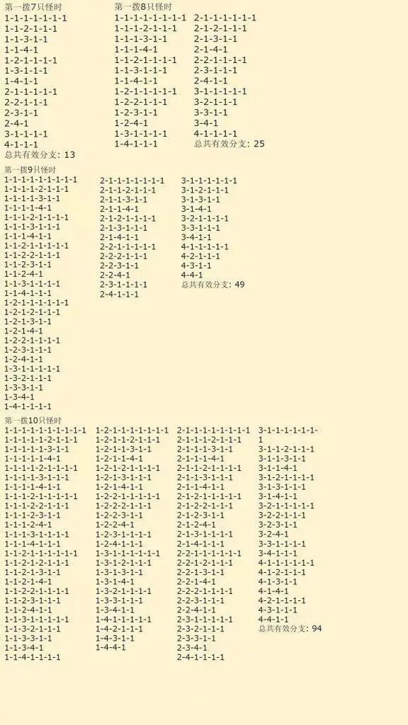 其中,有兩處儲存,可以節約時間。分別是1/3完成步驟1/回到旗標位置儲存留下三隻,以及1/1/2,留下兩隻,即: