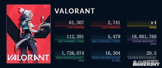 在2020年的首次封測時,《無畏契約》就以170萬人的同時觀看人數,單日觀看時長3400萬小時的成績迅速躋身到了海外直播平臺的第一梯隊。公測一年後,《無畏契約》更是創下了1400萬月活躍使用者驚人成績,雖然這並不能與擁有2400萬月活的《CS:GO》掰手腕,但在Twitch上,《無畏契約》每月的直播頻道都超過了4000個,這相當於《CS:GO》同時期頻道數的近兩倍。