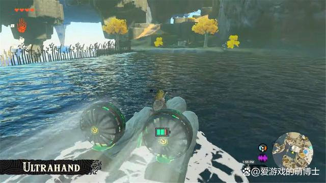 除了武器可以組合之外,相信之前看過遊戲載具的小夥伴已經推測出:遊戲中的各種移動工具也是林克用各種材料組合打造出來的。沒錯!這就是“究極手”機制,我們可以把樹幹和浮空島上的遺蹟零件組合一下,就變成了一艘小船,可以在水面上移動,而不消耗耐力;而過去預告片中的奇特的汽車和飛行器等等也都不是遊戲裡現有的,它們全都是玩家利用各種素材發揮創意拼湊而成!