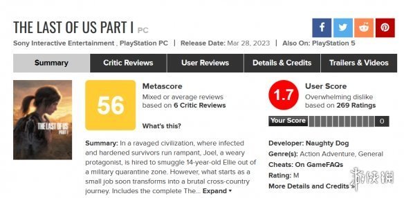 截止至本稿發出時,《最後生還者重製版》PC版的媒體綜合評分(56分)和玩家評分(1.7分),均為頑皮狗史上最低,且與以往作品評分差距極大。