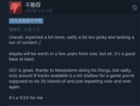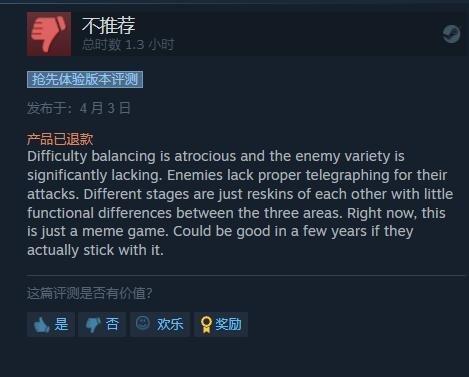 給出差評的玩家認為遊戲目前內容還比較缺乏,關卡種類和敵人種類少,只有30個不斷重複的島嶼,還有玩家表示難度平衡很糟糕。