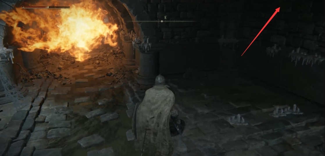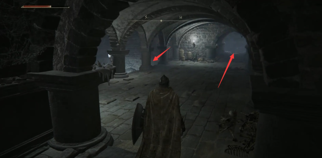 1、剛進來見到NPC,前方路盡頭,左手邊箭頭所指的地方有個怪就躲在那,你一過去就偷襲你。玩家需要注意一下。