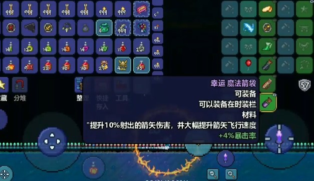 首頁 泰拉瑞亞 問答 泰拉瑞亞三箭袋是什麼? 2022-07-01 三箭袋指的是三種不同的箭袋,這三種不同的箭袋分別是追蹤箭袋、熔岩箭袋和魔法箭袋。玩家使用弓作為武器時,需要佩戴者三種箭袋,原因是這三種箭袋的傷害可以疊加。