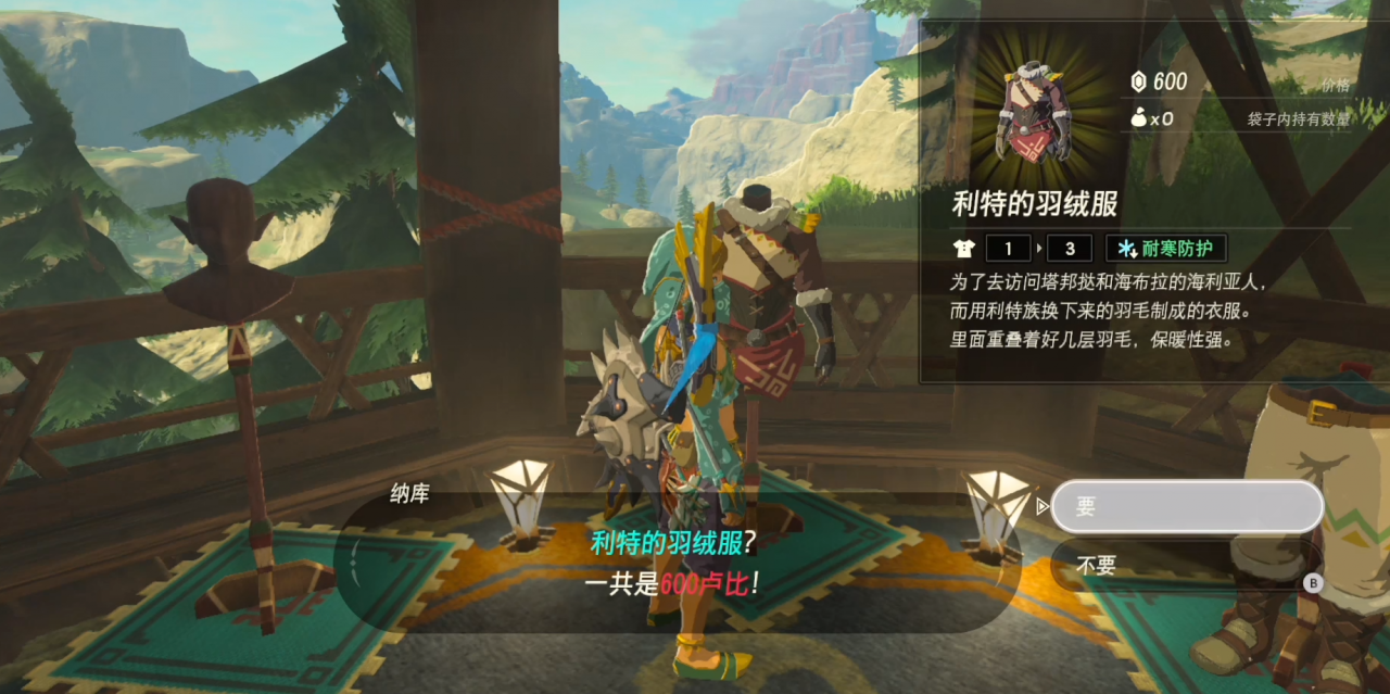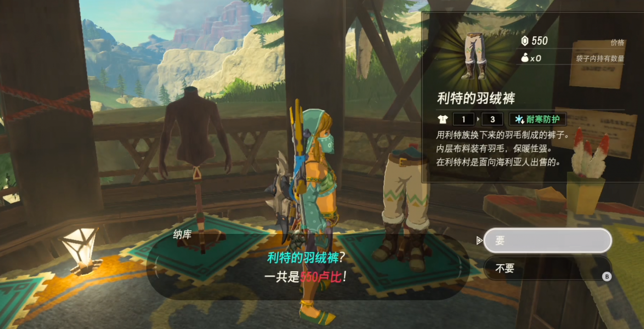 羽絨套裝的獲取方法是需要我們來到利特村,大地圖的西北部,風神獸就是在這裡擊敗,在利特村的地圖中找到裝備商店,花掉2150盧比,就能買到這一套裝備了。它們的價格分別是頭部:1000;衣服:600;鞋:550。