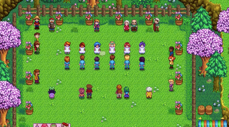 遊戲除了一天中時間的變化,還有四季和天氣的變化。遊戲中還存在著各類節日,比如春季的「花舞節」,可以邀請單身村民一起跳舞加深彼此關係;夏季尾聲的「月光水母節」,和全鎮居民一起觀看月光水母的遷徙,作為對夏季的告別。