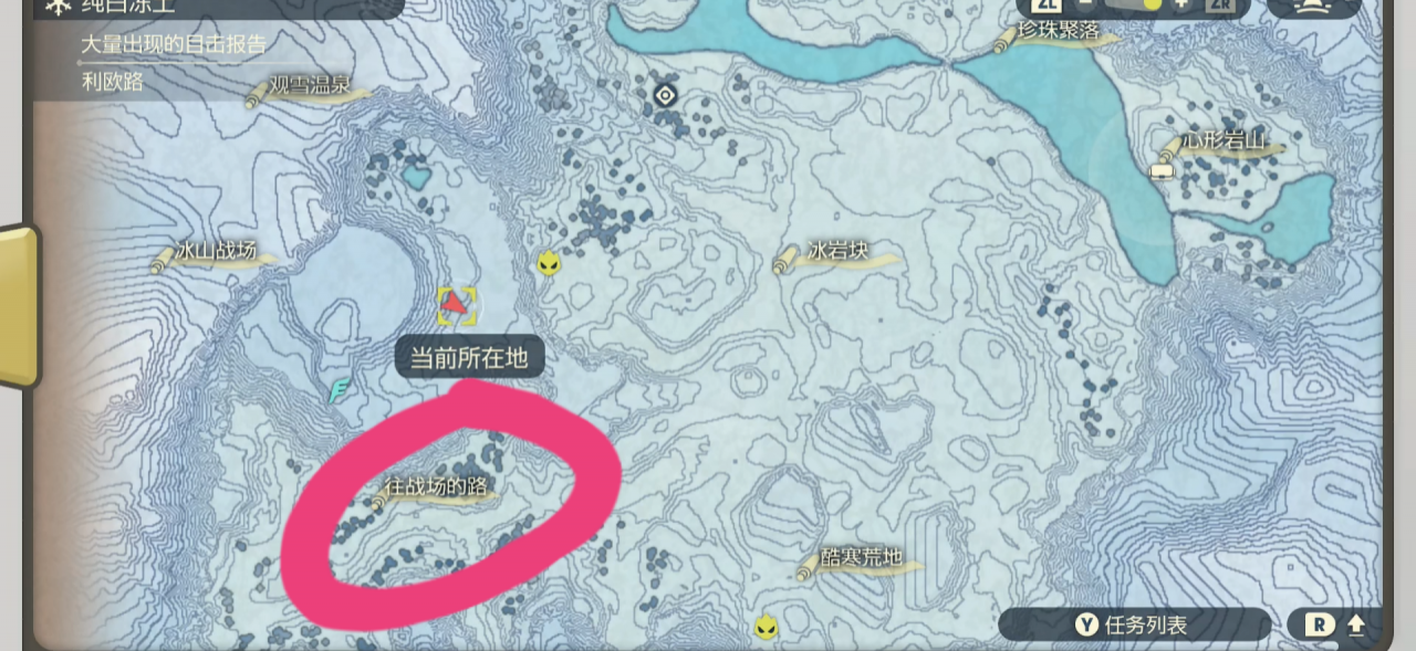 首頁 寶可夢傳說:阿爾宙斯 問答 寶可夢傳說:阿爾宙斯怪力在哪抓? 2022-07-01 1.寶可夢傳說:阿爾宙斯怪力的主要棲息地在純白凍土的往戰場的路。2.純白凍土的往戰場的路的具體位置如圖所示。3.在這裡就可以看到怪力。