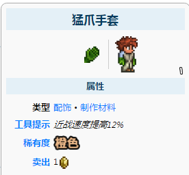 首頁 泰拉瑞亞 問答 泰拉瑞亞猛爪手套怎麼獲得? 2022-07-01 猛爪手套是一種配飾,能提高 12% 近戰攻擊速度,並且和所有其他攻擊速度增強都能疊加。猛爪手套出現在有著常春藤箱的叢林神龕和叢林匣中。以上就是問題的全部答案,希望能夠幫到你,謝謝。