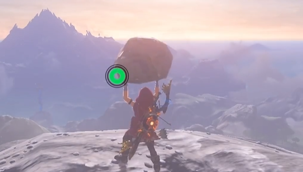 繼續往西邊走來到瀑布的邊緣,往下滑翔,會在半山腰處看到一開石頭,舉起石頭即可獲得