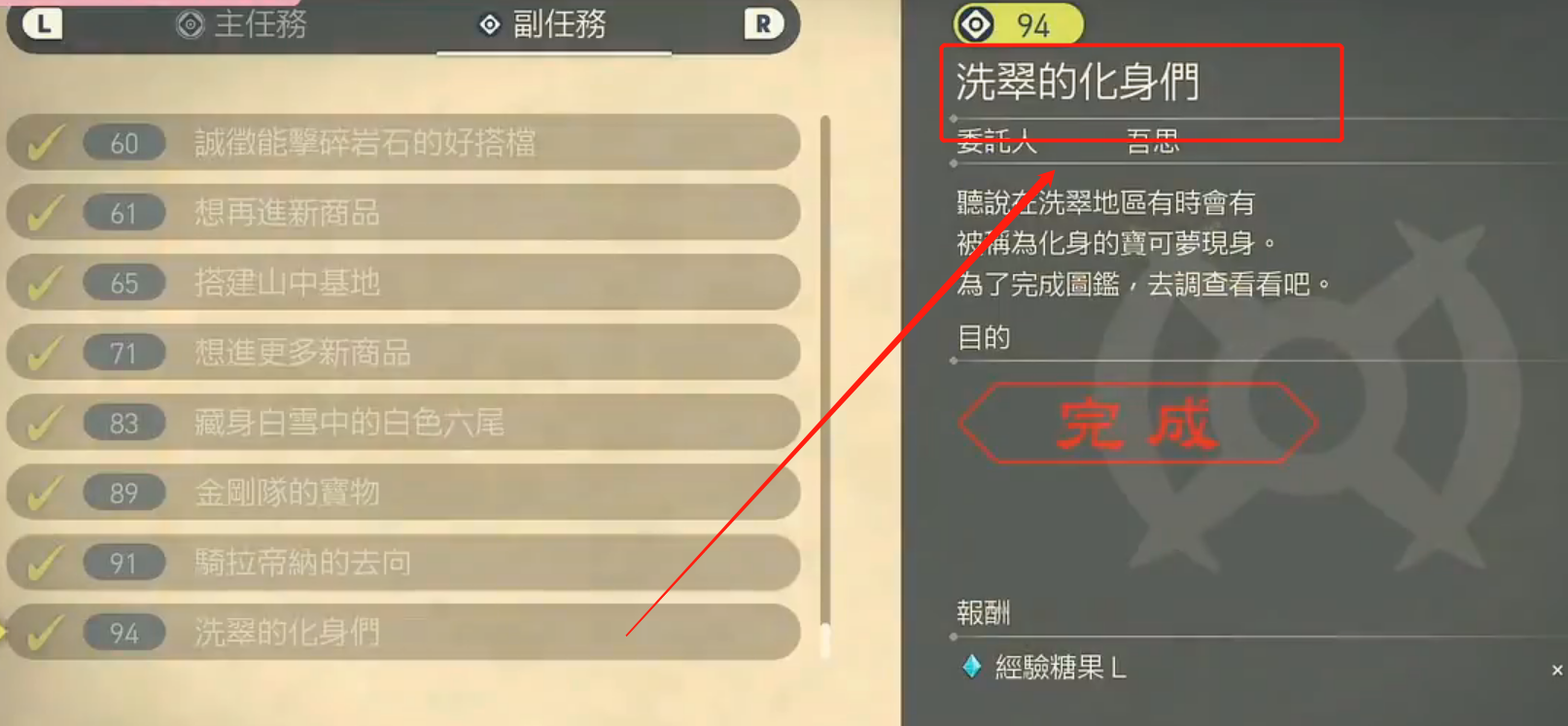 1.玩家首先要接受任務洗翠的化身們