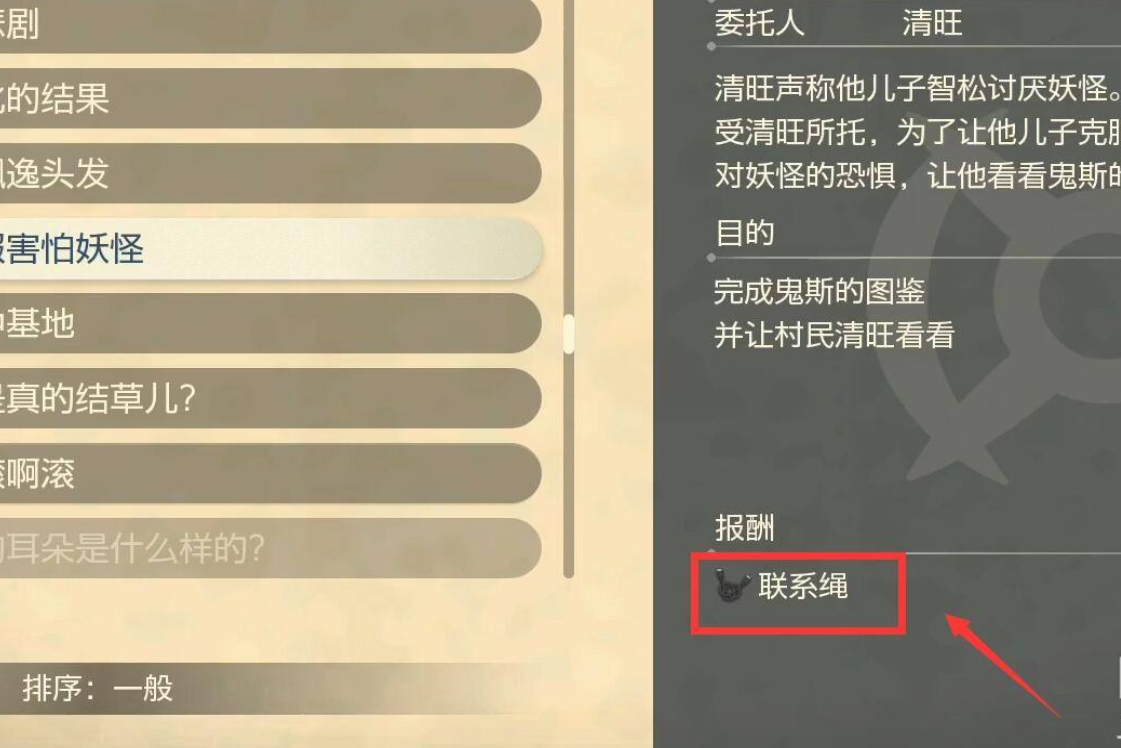 5、最後讓村民清旺看看完成任務即可獲得聯繫繩。